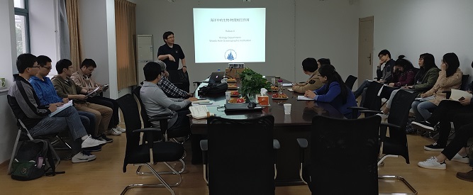 2016年4月26日下午,来自美国伍兹霍尔海洋研究所(Woods Hole Oceanographic Institution)的副研究员季如宝博士受邀来PlayAce游戏平台开展学术交流,进行题为“海洋中的生物-物理相互作用”的学术报告,报告会由PlayAce游戏平台王如云教授主持。报告会以海洋中浮游植物和动物的有趣介绍引入,提出海洋生物与海洋物理过程的相互作用是目前的研究热点和研究前沿。报告中季博士还谈到了几种实用的内波观测方法,特别是通过对珊瑚礁的研究来调查内波的发展的方法新颖独特。该报告从北极地区浮游生物的分布与发展来探究该地区的海洋物理特性开始,再到海洋物理特性对小丑鱼在曼谷河流分布的影响,最后再到南极两侧不同冰型的形成机制,阐述了海洋中生物特性与物理特性之间的相互作用。报告会后,参会老师和员工与季如宝博士就研究资料的获取以及预报的准确性等相关问题进行了深入的讨论和交流。