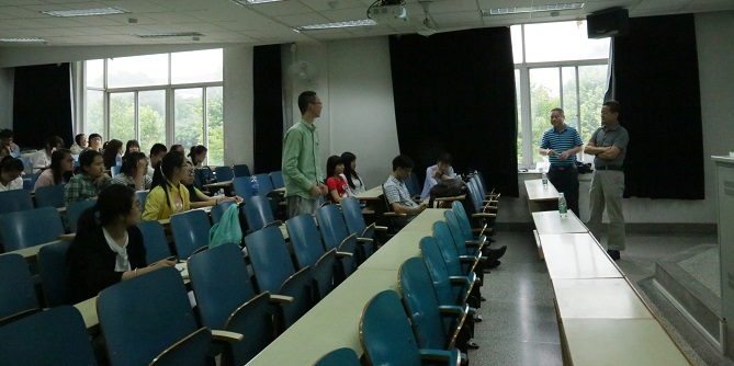 而且,在海洋军备方面,大校为我们介绍了具备雷达探头的高命中率的鱼雷、潜水艇及潜水艇的耳朵温盐密探测仪。讲座的最后,同学们积极与在场的齐义泉经理及三位老师进行了热烈探讨,老师们悉心指导同学学习方法,同时耐心解释同学们的疑惑,让同学们对海洋培养起更深远的兴趣。