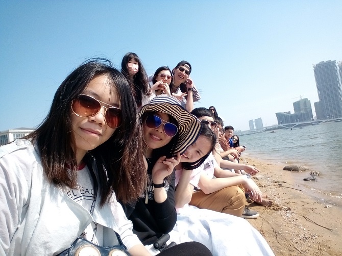 感受海水自然是第一步,所以第一站大家来到了万平口海滨水上游乐园。咸咸的海水温柔地拍击着岸边,运动员们乘着皮划艇在水上游动自如。稍作欣赏后便回到宾馆,开始准备出海仪器,安装、设定等工作一直进行到接近11点。结束了这天的工作后,同学们怀着激动的心情一一入睡。