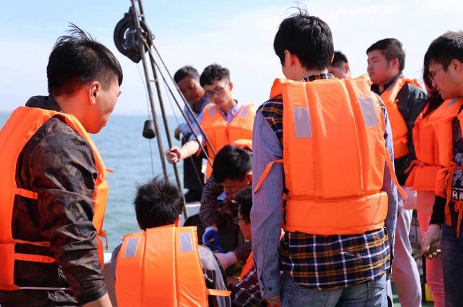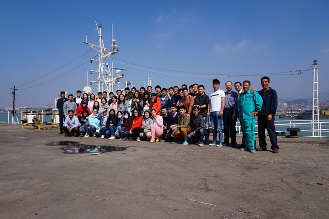 517日,在储鏖、吴祥柏两位老师和6位研究生学长学姐的带领下,奔驰的客车载着40颗激动的心来到了山东日照, 2013级海洋1班开始了日照之行,海上之旅的出海测量实习。