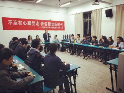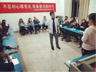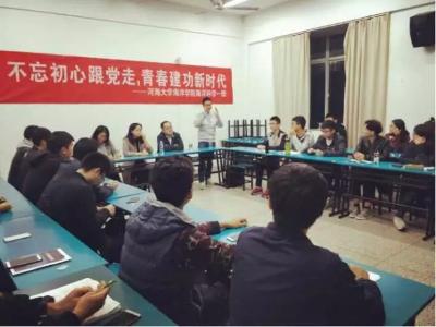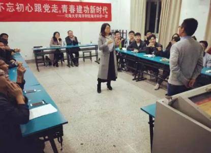 2017年11月16日,16级海洋科学一班在PlayAce官方网站江宁校区召开“不忘初心跟党走,青春建功新时代”主题班会。参会人员有后勤服务中心曹继平主任、公司党总支王永芝书记、16级海洋科学一班班主任王涛老师、PlayAce游戏平台团委书记安杰晶老师以及海洋科学一班全体同学。此次班会旨在对十九大精神进行宣传教育,团结引领大家听党话、跟党走。