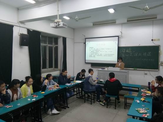 之后我们进行了心灵解密环节,这一环节是将大家在会前提前准备的心理问题匿名当众进行解决。集全班人的智慧来为同学解决心理问题。