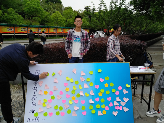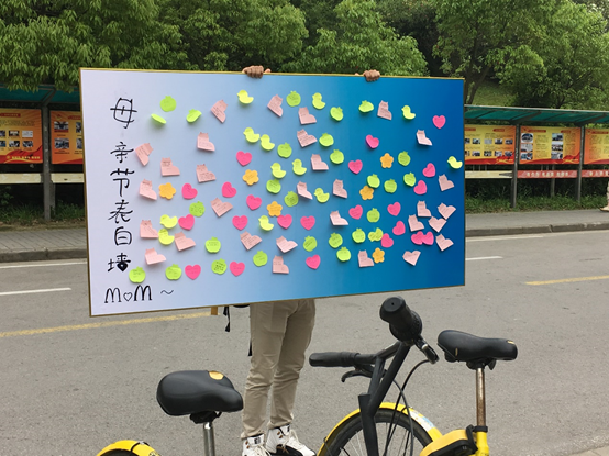 本次活动的活动方式是让同学们在便利贴上写下自己对于母亲的真诚话语贴在展板上,借此表达自己对于母亲的爱意。