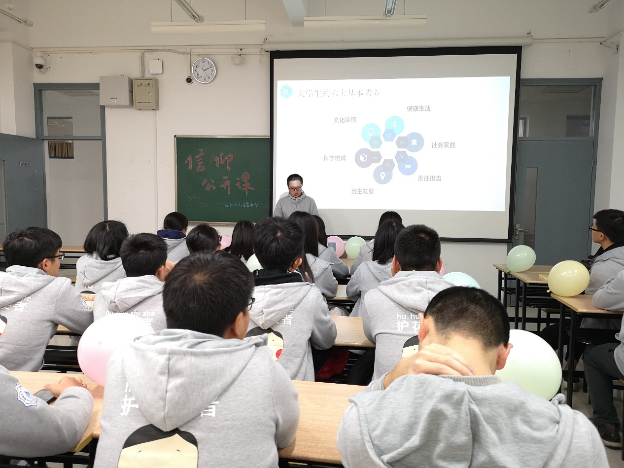 12月4日,18级海洋科学2班开展了“信仰公开课”团日活动:“新思想公开课”与“素养公开课”演讲。本次团日活动通过宣传习近平新时代中国特色社会主义思想与社会主义核心价值观,希望同学们思想得到建设,素养能够提升。