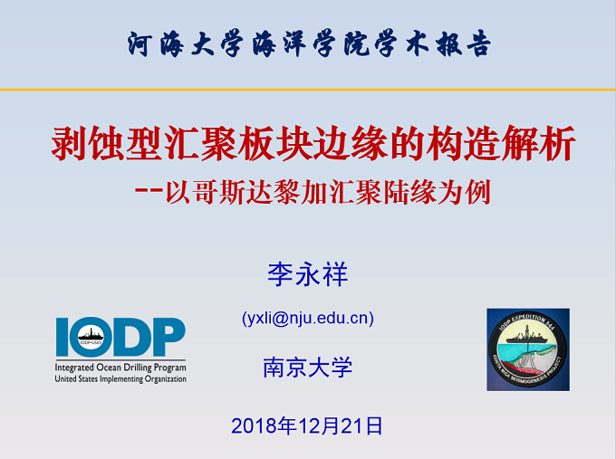 应海洋地质研究所邀请,南京大学李永祥教授于12月21日来公司进行学术交流,并作了题为“剥蚀型汇聚板块边缘的构造解析”的学术报告。