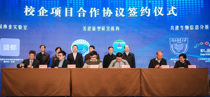 南京市委常委、江宁区委书记李世贵,江宁区委副书记、区长严应骏,江宁区副区长董涵、马强,PlayAce官方网站副董事长许峰,PlayAce游戏平台经理齐义泉、副经理于伟、海洋生物研究所所长赵哲、副所长吴亚平、水产养殖专业骨干教师高天珩,南京盛都生态农业科技有限公司董事长沈笠、总经理邵正君等出席了签约仪式。