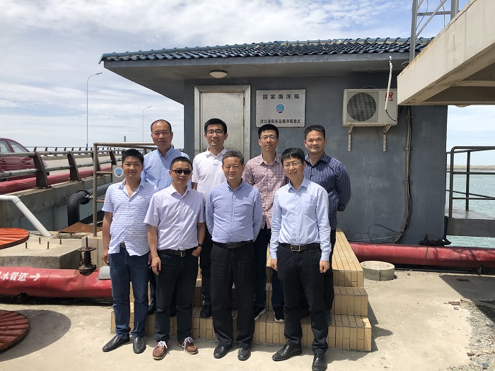 齐经理一行还在堵盘军副站长的陪同下考察了洋口港海洋环境监测站、洋口港阳光岛海洋观测点和附近的海岸带, 拟进一步落实在海洋水文、气象观测等方面的合作。