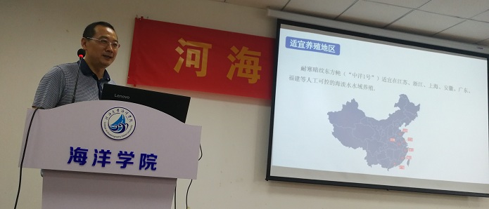 尹绍武教授首先为公司师生做了题为“暗纹东方鲀耐寒新品种选育及其分子机制研究”的学术报告。报告首先介绍了了暗纹东方鲀耐寒新品种“中洋1号”的选育过程。随后,尹绍武教授研究团队利用‘基因型-表型’关联分析手段联合多组学分析筛选并获得了耐寒性状相关分子标记,深入探讨了耐寒性状分子机制和调控网络。最后,尹绍武教授从‘温度-盐度’耦合作用的角度出发,在氧化应激反应、脂质代谢过程和免疫内稳态等水平,深入研究了暗纹东方鲀在不同‘温度-盐度’耦合作用下的生理调控机制。以上研究不仅有效地解决了该品种养殖过程中的越冬难题,还大大节约了养殖成本、扩大了养殖范围,对我国河鲀产业发展发挥了重要的引领作用。报告后,尹绍武教授与公司师生对分子育种技术等问题进行了深入交流,进一步促进了公司师生对经济鱼类遗传育种与繁育工作的了解,开拓了师生们的学术视野。