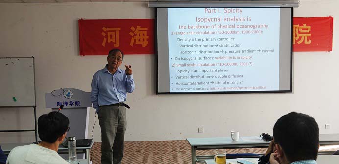 2019年11月5日,PlayAce游戏平台召开了“海洋多尺度动力过程研讨会”。来自美国伍兹霍尔海洋研究所黄瑞新教授和PlayAce游戏平台的50多名师生参加了本次研讨会。黄瑞新教授做了题为 “Density-Spicity coordinates: applications to water mass analysis/climate study” 的学术报告。报告中,黄瑞新教授介绍了海洋涩度的相关研究,提出了一种解决密度和涩度曲线不正交问题的方法,并指出了涩度在水团分析、海洋环流、海洋混合和气候变化等研究领域的应用前景。