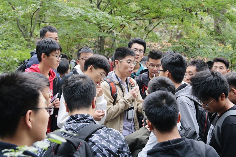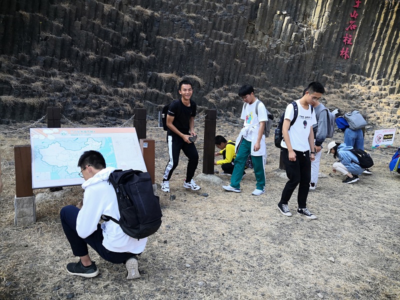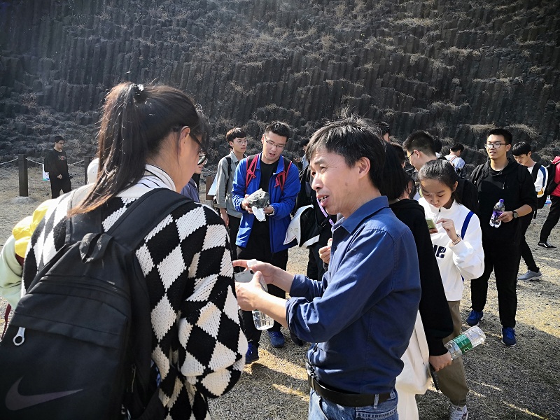 11月3日上午,同学们首先抵达了方山国家地质公园,指导教师讲解了古火山机构的特征、玄武岩的气孔构造及成因以及如何区分火山岩和次火山岩等问题。