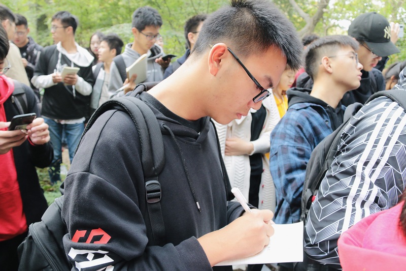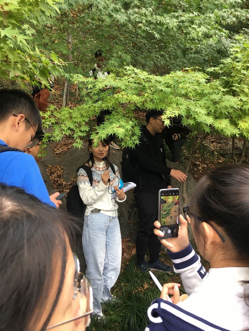 随后在桂子山的实地观察学习中,同学们被大片石柱林所震撼,指导教师讲解了柱状节理的成因以及如何识别玄武岩中的幔源包体。在南京石头城遗址公园中,指导教师详细讲解洪积砾岩的特别之处及其复杂的组分所反映出的地质信息。