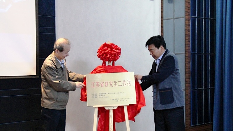 华祖林经理与王建总工程师为“江苏省研究生工作站”揭牌