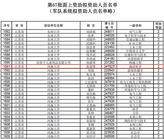 中国博士后科学基金会公示了第67批面上拟资助名单,公司张道锋博士荣获二等资助。据悉,本批次面上一等资助仅用于“向与新冠肺炎疫情防控有关的博士后研究人员开展专项资助”中直接参与新冠肺炎一线救治工作的博士后研究人员。