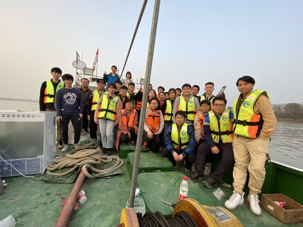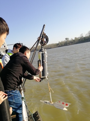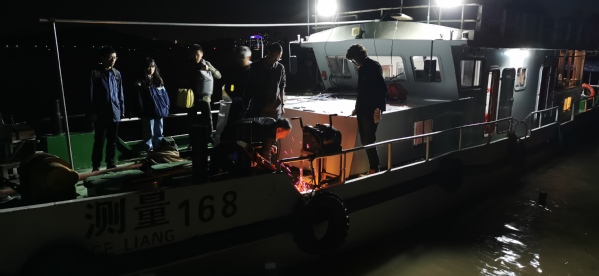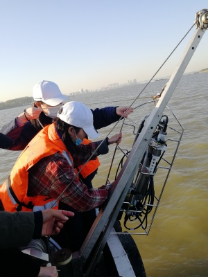 出于疫情期间安全考虑,本次实习在长江南京市段完成。本河段属于典型的感潮河段,水文特征较为复杂,水体环境与城市人口活动密切相关。本次调查选择在枯季天文大潮期间,调查潮汐对本河段水动力特征、泥沙输运、河流生态等的影响。师生们搭载测量168船只,分批对长江南京段进行定点和横断面观测。
