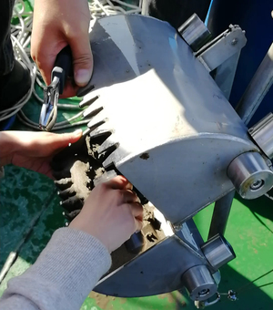 图九 投放Niskin水样瓶采集水样 |