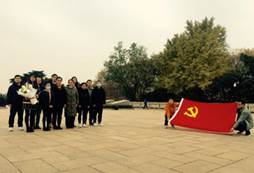 随后,在庄严肃穆的雨花台烈士纪念碑前,海洋地质与地球物理系党支部书记颉炜同志带领大家列队肃立,深切缅怀革命先烈,向革命先烈敬献鲜花,以寄托对革命先烈的无限哀思,并在纪念碑前,重温入党誓词,坚定理想信念。大家怀着无比敬仰的心情,缓缓绕碑一圈。