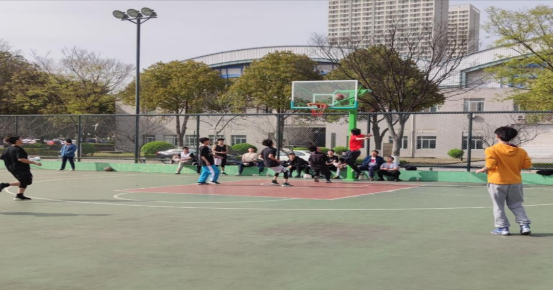 “哔”——裁判吹响哨子,比赛正式开始。球权由19级同学跳球抢到,后卫运球至前场后,便展开了他们训练已久的战术,前锋给得分后方挡拆,得到出手空间后瞬间出手,球应声落网,19级首次进攻便得2分,手感火热。