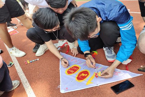 图三:小组绘制“建党100周年”主题风筝 图四:小组对绘制的风筝进行展示