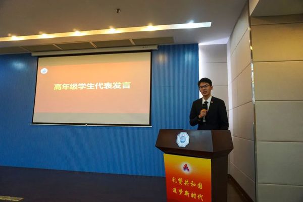 随后,新生代表娄函熙同学发言。他的发言文采飞扬、激情澎湃,讲述了从入学至今,一个多月以来对大学的感受,表达了对未来将要作出的积极改变,也许下了对大学美好的期待,不负韶华、只争朝夕!