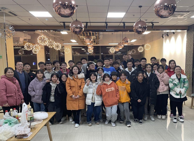 20211221日冬至日,2021级海洋科学一班在新新食堂四楼组织了包饺子活动,班级全体成员以及班导周桂地老师辅导员安杰晶老师参加了此次活动。