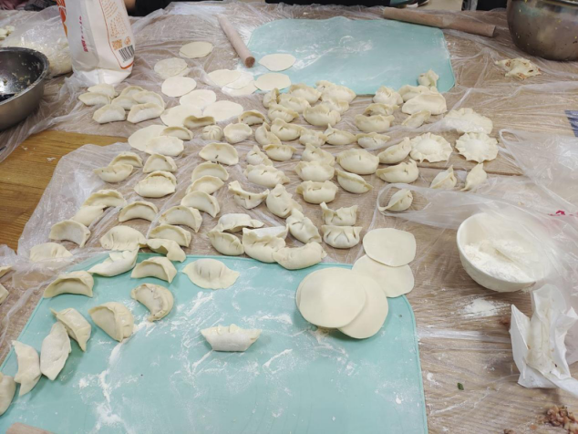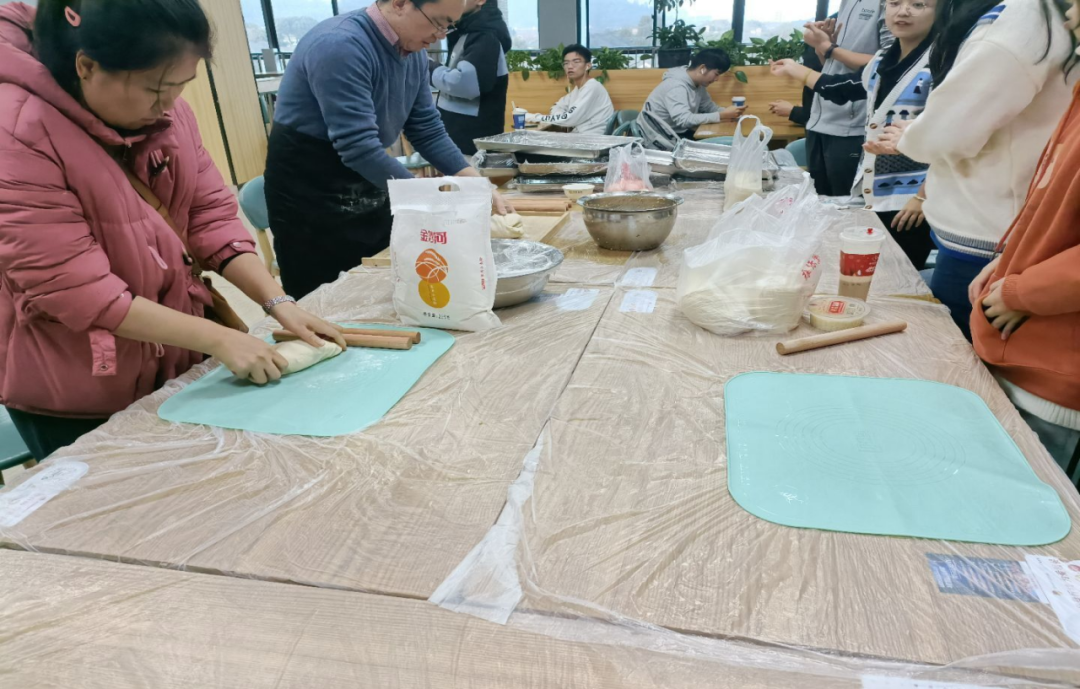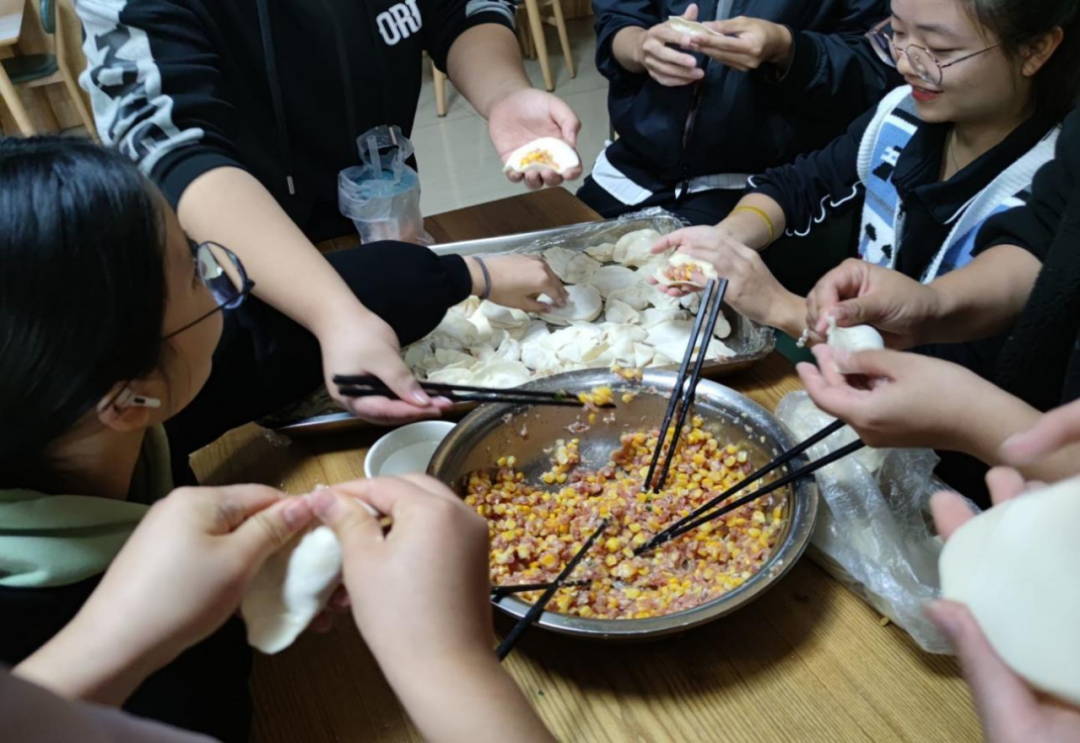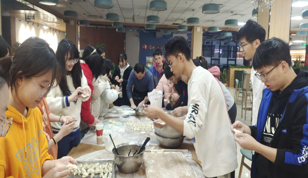 经过近两个小时的努力,老师、同学们齐心协力,和出了香软的面,调出了好吃的四种饺子馅,包出了七八百个奇形怪状却充满暖意的饺子。同学们相互学习不同地区饺子的包法,每个人都体验到了一起包饺子的快乐,同时,为了照顾南方同学的习俗,同学们还煮了精心准备的芝麻汤圆。