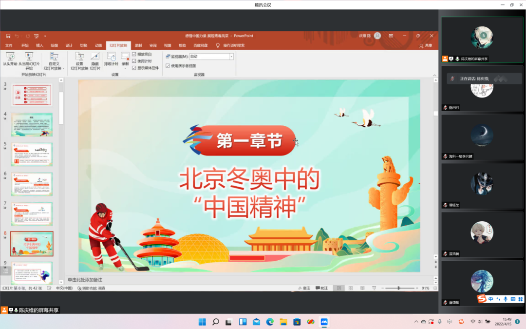 本次活动中,同学们在组织委员的引导下,从北京冬奥中展现的中国精神和日常生活中体现的抗疫精神这两个维度出发,共同体悟这两大精神中所展现的中国力量。