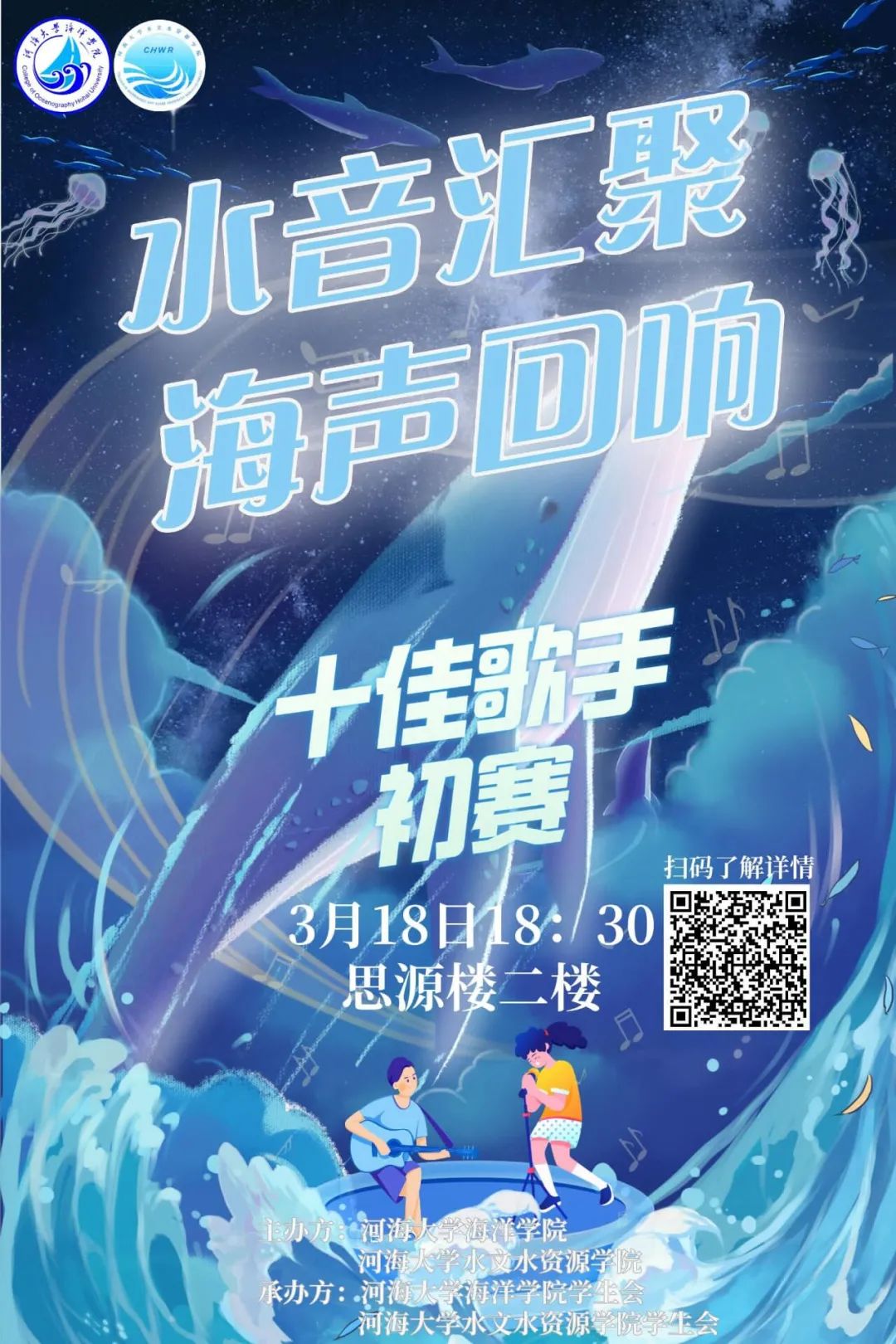 由水文院与海洋院共同举办的“水音汇聚,海声回响”十佳歌手比赛即将开赛!