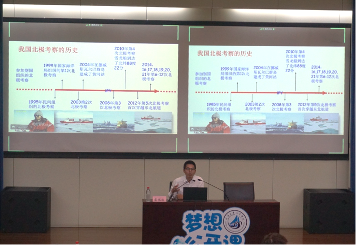 雷瑞波从为何要开展北极考察、我国的北极考察进程和历史、当前我国在北极考察所取得的成绩和未来张望等方面展开论述,讲解了北极海冰和极地系统有关知识,认识到海冰和极地系统对于全球的重要作用,以及我国的极地考察进程等。通过此次讲座,同学们加深了对自身专业的认识,认识到了极地考察对于中国的重要意义以及发展海洋团队建设海洋强国对于国家的重要作用,希望同学们可以秉承着“拓宽眼界,了解大洋、走向深蓝”的意志,为我国海洋建设做出自己的贡献。