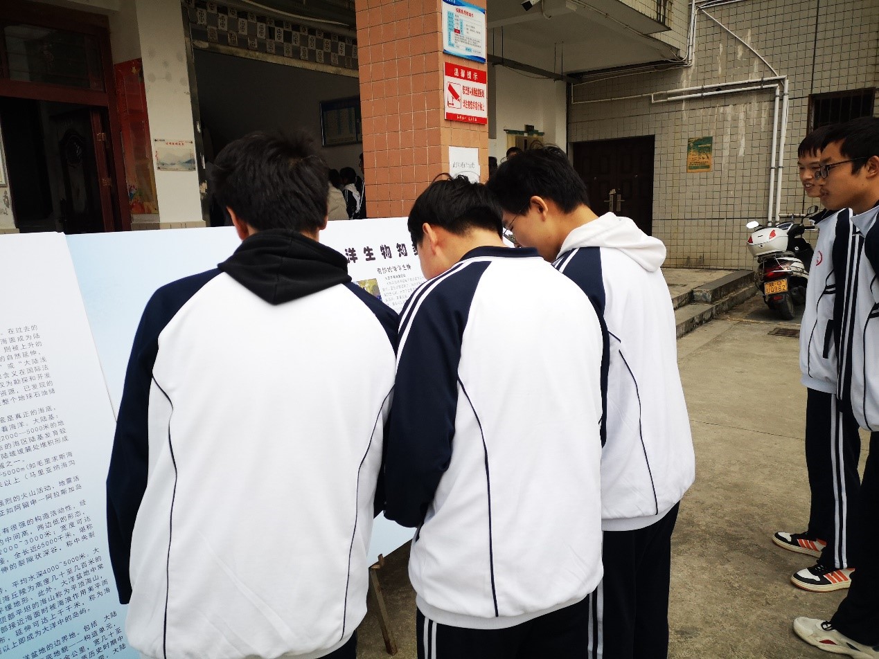 科普展共分为“迈进海洋”——岩石的地质经历展、 “跃动海洋”——海洋生物科普展、“走进蔚蓝”——海洋与气候、 “探索海洋”——海洋观测技术展4个展区,让海洋知识融入校园文化建设中,提高了员工们的科学素养,增强海洋意识,营造了良好的科普知识宣传氛围。