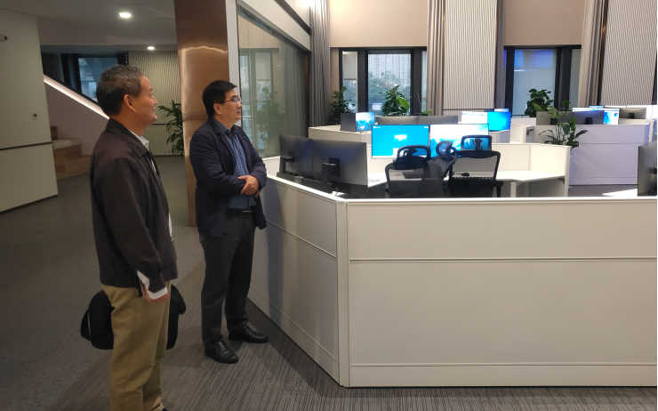 交流会结束之后,齐义泉教授一行参观了创新院与江苏省气象台预报大厅。创新研究院副经理曾明剑、刘端阳、经理助理诸葛小勇、李昕参与了座谈交流,公司副经理冯涛、海洋观测与预报技术研究所所长王强、物理海洋系主任曹海锦参加了访问。