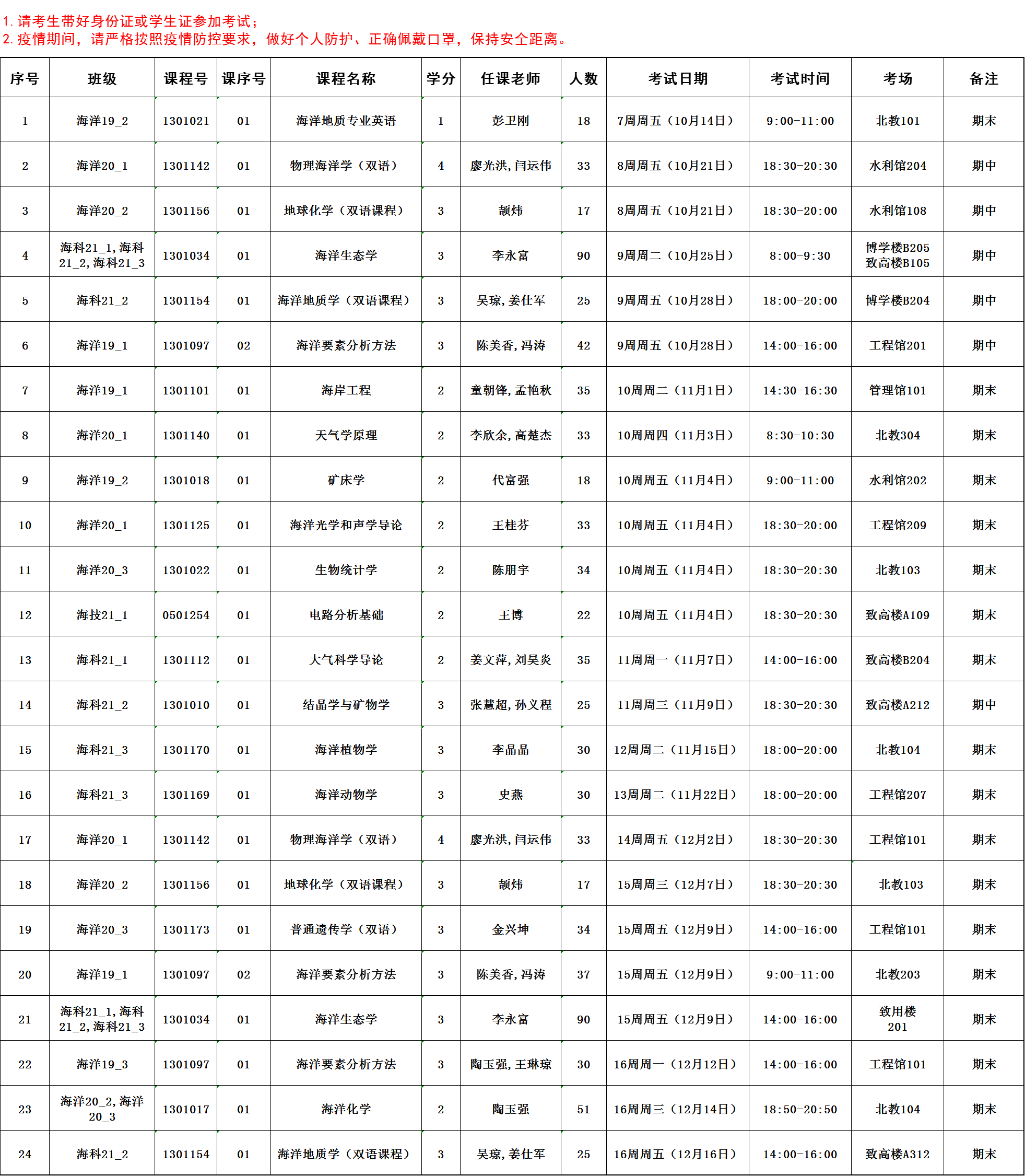 2022-2023-1学期海洋院专业课考试安排