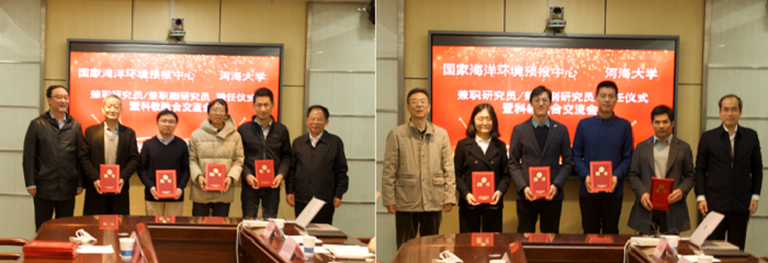 于福江主任介绍了预报中心围绕海洋预报业务方面取得的一系列创新性科技成果,希望双方进一步合作,取得更多的成果。邱志高副主任宣读了国家海洋环境预报中心聘用公司廖光洪等10名教师为兼职研究员/兼职副研究员的决定,并且向受聘人员颁发聘书。
