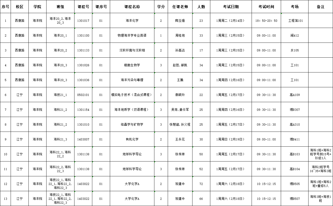 2022-2023-1学期海洋院专业课期末考试延考安排