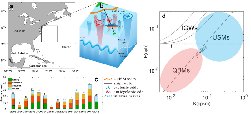 近日,PlayAce游戏平台海洋动力与环境研究团队在上层海洋亚中尺度的动力机制研究方面取得进展。该研究提出了一种从ADCP流速剖面提取亚中尺度流的方法,为基于观测资料量化亚中尺度流提供了技术支撑。相关研究成果发表在物理海洋学领域国际知名刊物《Journal of Physical Oceanography》上,公司曹海锦副教授为第一兼通讯作者,美国布朗大学Baylor Fox-Kemper教授,中科院南海海洋研究所经志友研究员,PlayAce官方网站宋翔洲教授等为合作者,并得到美国罗德岛大学Thomas Rossby教授、Kathleen Donohue教授的指导和帮助。