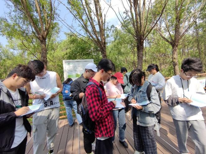 6 同学们在上海崇明西沙国家湿地公园填写野外记录簿