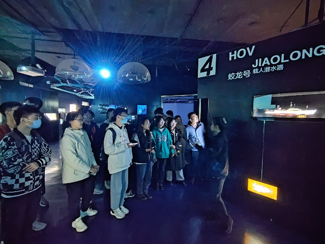 怀着无比期待的心情,同学们于第二日抵达上海深海探索馆。在讲解员的引导下,同学们通过馆内奇幻的影音、声光效果以及丰富的模型了解了深海的奥秘和海洋探索的尖端技术,并通过馆内各样新颖的互动装置,沉浸式地在趣味中熟悉一些深海工作的流程,对海洋科学研究、深海探索拥有了全新的了解和认识。