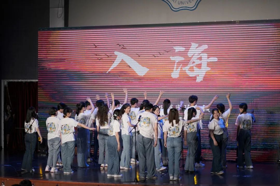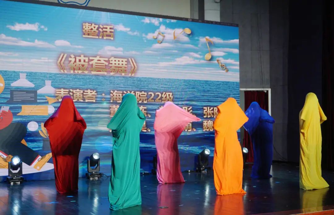 最后,可爱被套精灵们的《被套舞》将晚会推向高潮,之后一曲原创歌曲《蓝色》表达了坚韧可敌困境,接下来是由21级员工带来的诗朗诵《向海》毕业后的他们依然前途似海。之后是毕业生代表带来的大合唱《入海》他们用泪水作为最后的告别,但眼中依然饱含炽热,奔赴漫漫山海。最后一首惊喜曲目《再见》为晚会画上了句号。