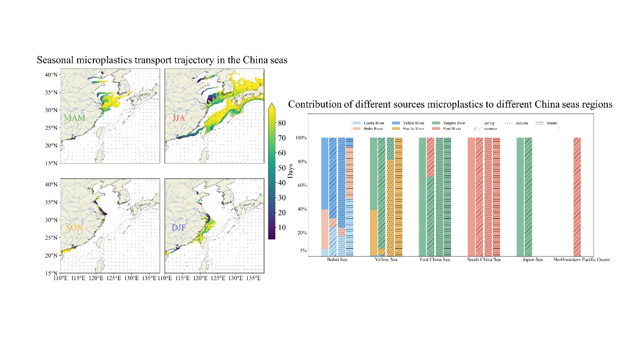微塑料被称为海洋中 “PM2.5”, 其在近海区域的浓度和分布表现出季节性特征,它们对海洋生态系统构成潜在威胁和生态风险,并间接影响人类健康。陆地塑料废弃物被认为是海洋微塑料的主要来源,河流被认为是微塑料从陆地向海洋生态系统转移的主要途径,沿海地区已被确定为微塑料污染热点。由于缺乏相关的海洋观测,利用数值模型研究微塑料在海洋的分布、沉积和迁移已成为一个重要的方法。这项研究运用ROMS海洋模式并耦合LTRANS V.2模型,考虑潮汐,河流,风应力,热通量,淡水通量等影响因素,对中国近海不同种类微塑料(PE,PS,PET)的季节性输运、分布进行模拟,并在此基础上探究海洋垂直速度和微塑料类型对微塑料归趋过程的影响。研究表明(1)绝大多数漂浮微塑料在大部分时间都停留在中国海域,夏季是微塑料远距离输运的主要季节,输运距离最长的为珠江,达1300km。长江和珠江的平均输运距离比其他河流的输运距离大两个数量级。秋冬季节超过 75%的微塑料会在近岸搁浅。(2)各海域微塑料污染的分布、浓度和来源构成也呈现出一定的季节性变化。总体而言,中国中部海域的微塑料浓度最高。春季,微塑料污染主要分布在南黄海和东海东部(25.7%),大部分来自长江和淮河。夏季,污染主要集中在南黄海,占夏季微塑料排放总量的 49.9%,其中大部分来自长江。(3)海洋垂直速度在模拟微塑料输运过程中起着至关重要的作用。它大大减少了微塑料从长江进入杭州湾的量。此外,它还将陆源微塑料向太平洋的输运时间延长了 2-3 天,数量减少了 6%。(4)密度较低的聚乙烯(PE)的传输距离远于密度较高的聚苯乙烯和聚对苯二甲酸乙二酯(PS,PET),后者容易在海洋底栖环境中积聚。PET 和 PS 的传输距离比 PE 近两个数量级。