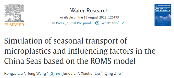 近日,公司海洋观测与预报技术研究所21级硕士研究生刘荣泽在导师唐佑民、王腾和李俊德老师的共同指导下,对中国近海微塑料的季节性输运、分布及其影响因素进行研究,揭示了中国近海陆源微塑料的季节性环境迁移规律,为微塑料污染管控提供了理论支持。相关成果以“Simulation of seasonal transport of microplastics and influencing factors in the China Seas based on the ROMS model”为题,发表在环境领域顶级期刊《Water Research》(中科院大类一区, JCR Q1, IF=12.8)上。该工作体现了物理海洋学和环境科学在海洋污染物研究中的交叉应用。公司21级硕士研究生刘荣泽为第一作者,王腾博士为通讯作者,李俊德教授、自然资源部第二海洋研究所卫星海洋环境动力学国家重点实验室刘晓辉副研究员和中国科公司地理与湖泊研究所朱青研究员为本文的共同作者。论文简介如下: