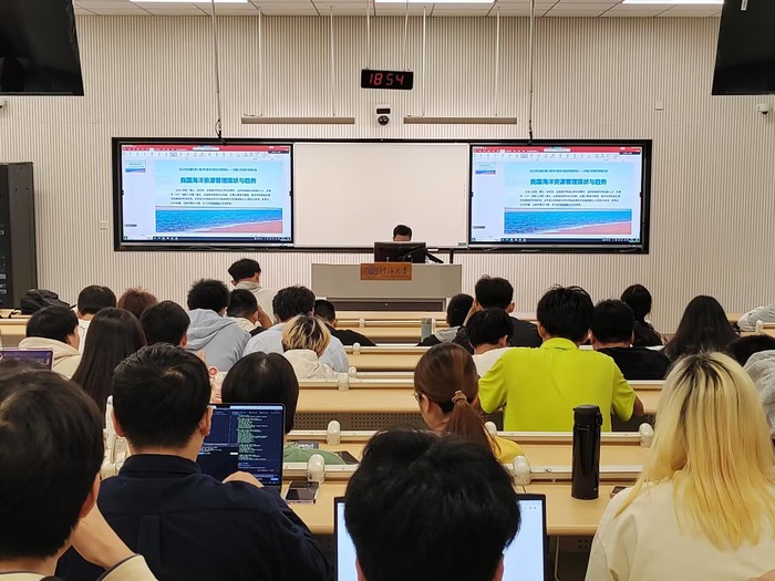 9月22日,岳奇研究员面向2022级本科生和2023级研究生做“我国海洋资源管理现状与趋势”专题报告。带领大家从海域海岛资源出发,讲述了我国海洋资源中的物质资源和空间资源概况,以及我国海洋管理、海洋空间规划及海洋资源保护利用管理制度,并对海洋资源管理的前景提出展望。