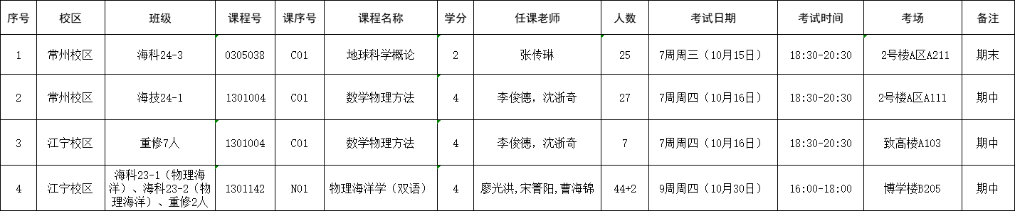 2025-2026-1学期海洋院专业课考试安排